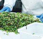 工人仔细筛选,检测不合格原料